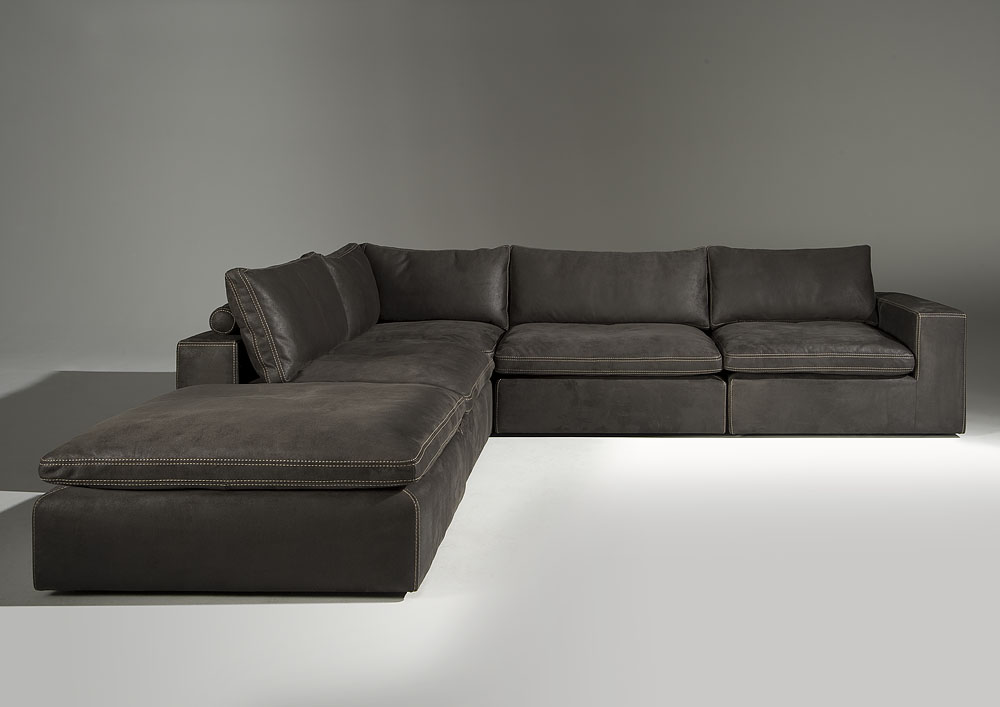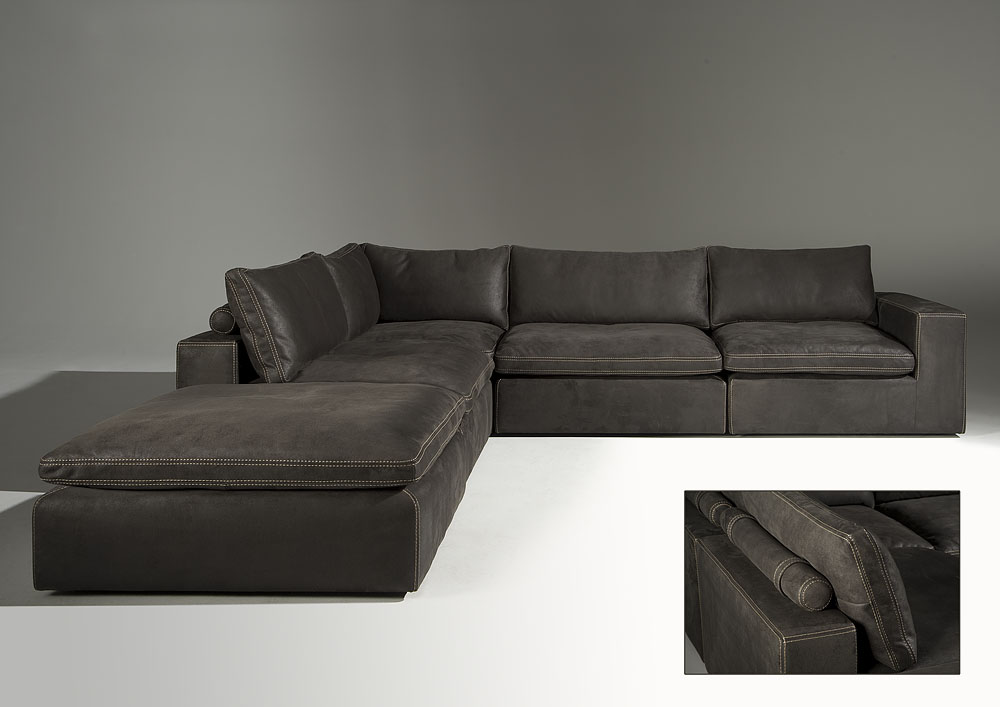 Das Ecksofa "leon" in Congo-leder ist ein Spaltleder aus der erste Oberschicht der Rindshaut auf