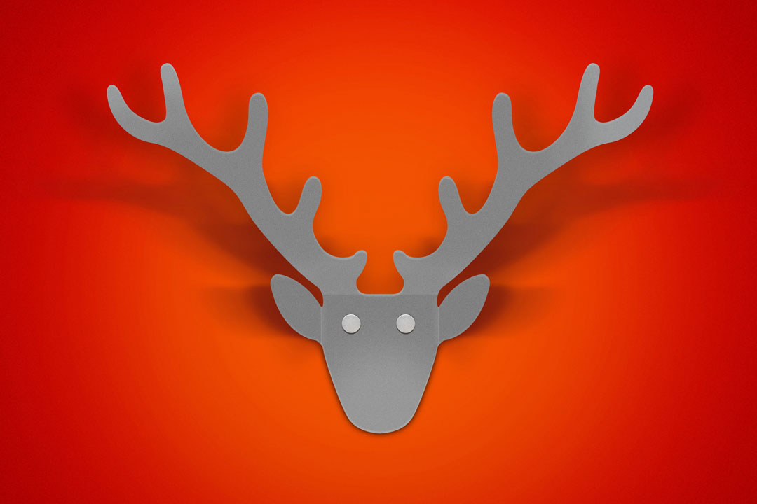 Stylische Garderobe in Form eines Hirschkopfes aus pulverbeschichtetem Stahl oder Edelstahl. In verschiedenen Farben erhältlich. Bietet Platz für Kleidungsstücke, Taschen und weitere Accessoires.