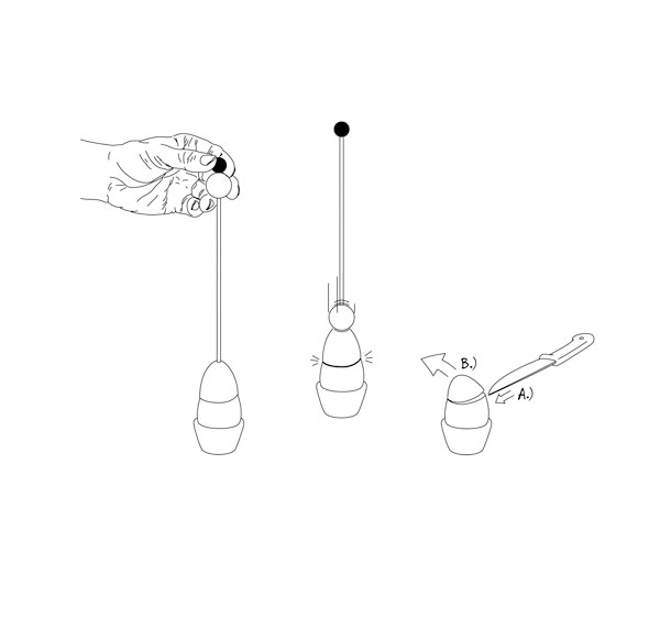 Der Eierknacker Clack verursacht eine Sollbruchstelle in der Eierschale. Danach können Sie den Eikopf leicht mit dem Messer abheben. Mit verschiedenen Motiven erhältlich.