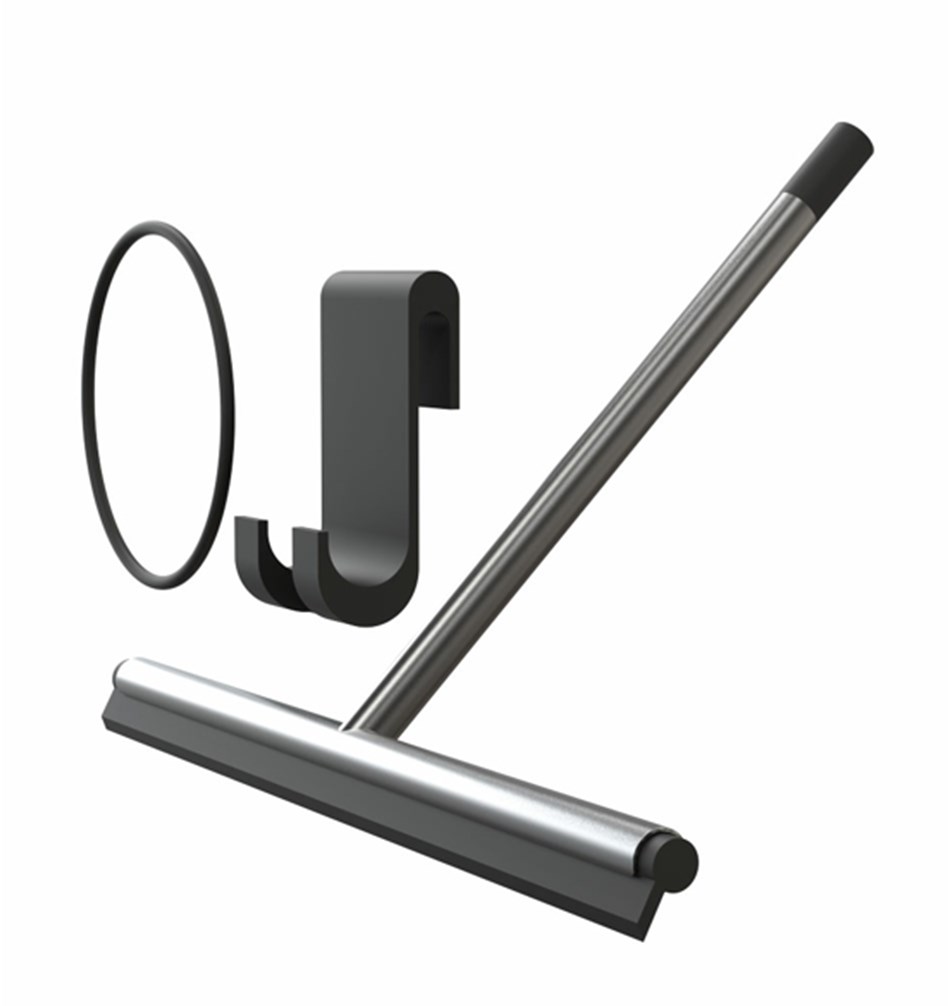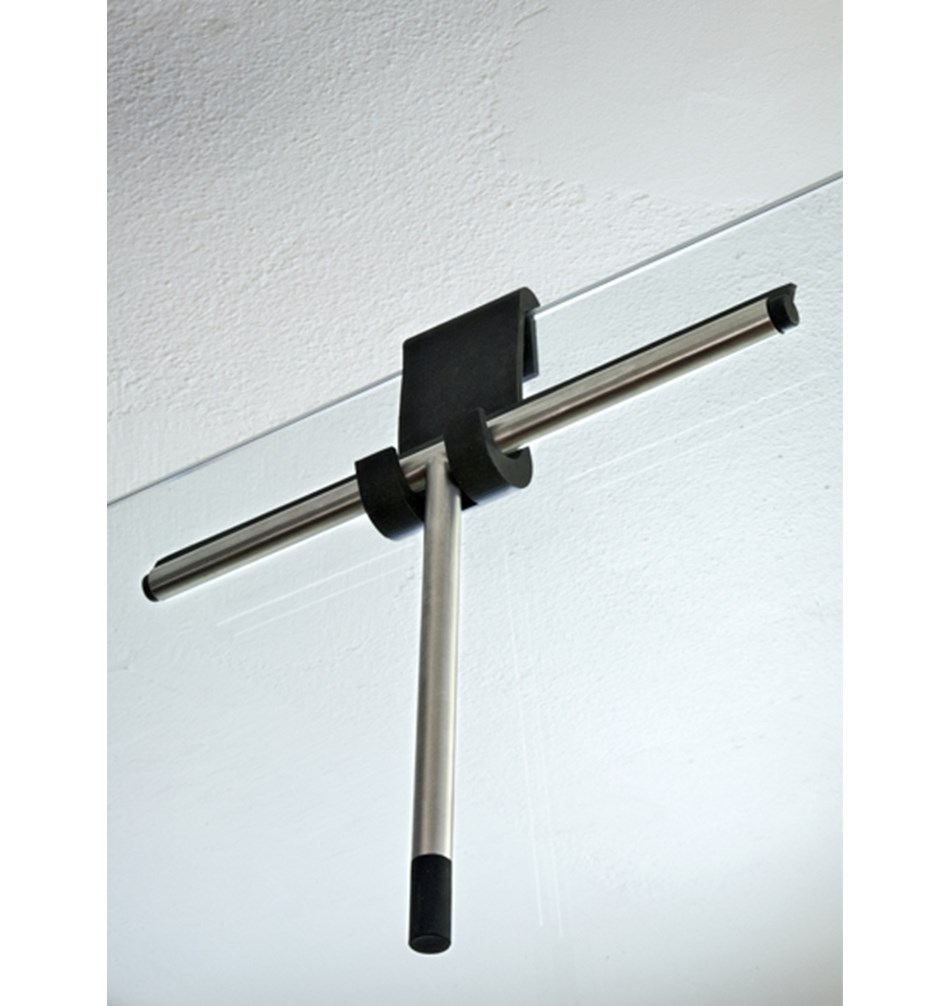 Der Glasabzieher wird mit Halter für Glastüren geliefert.