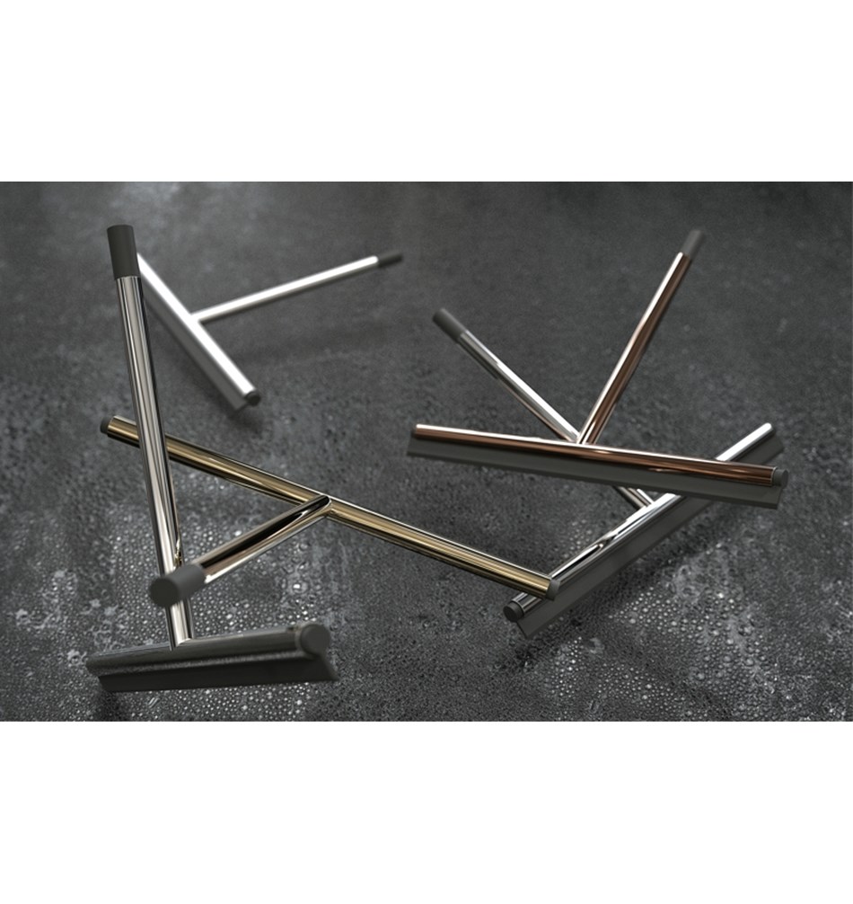 Die Serie ist in gebürstetem und poliertem Edelstahl erhältlich, ausgewählte Produkte auch in kupfer, gold, schwarz und weiß.Aufgrund der besonderen Materialauswahl trotzen diese edlen Stücke dem häufig im Bad-und Sanitärbereich eingesetzten meist aggressiven Putzmitteln.